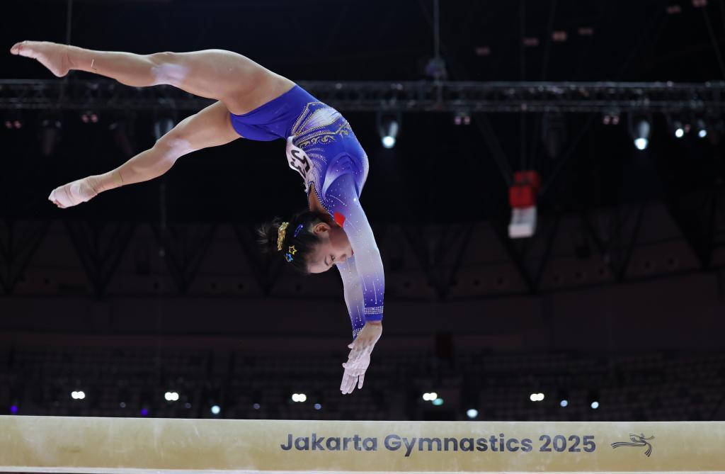 10月23日,张清颖在女子个人全能决赛平衡木项目比赛中。新华社记者 白雪飞 摄